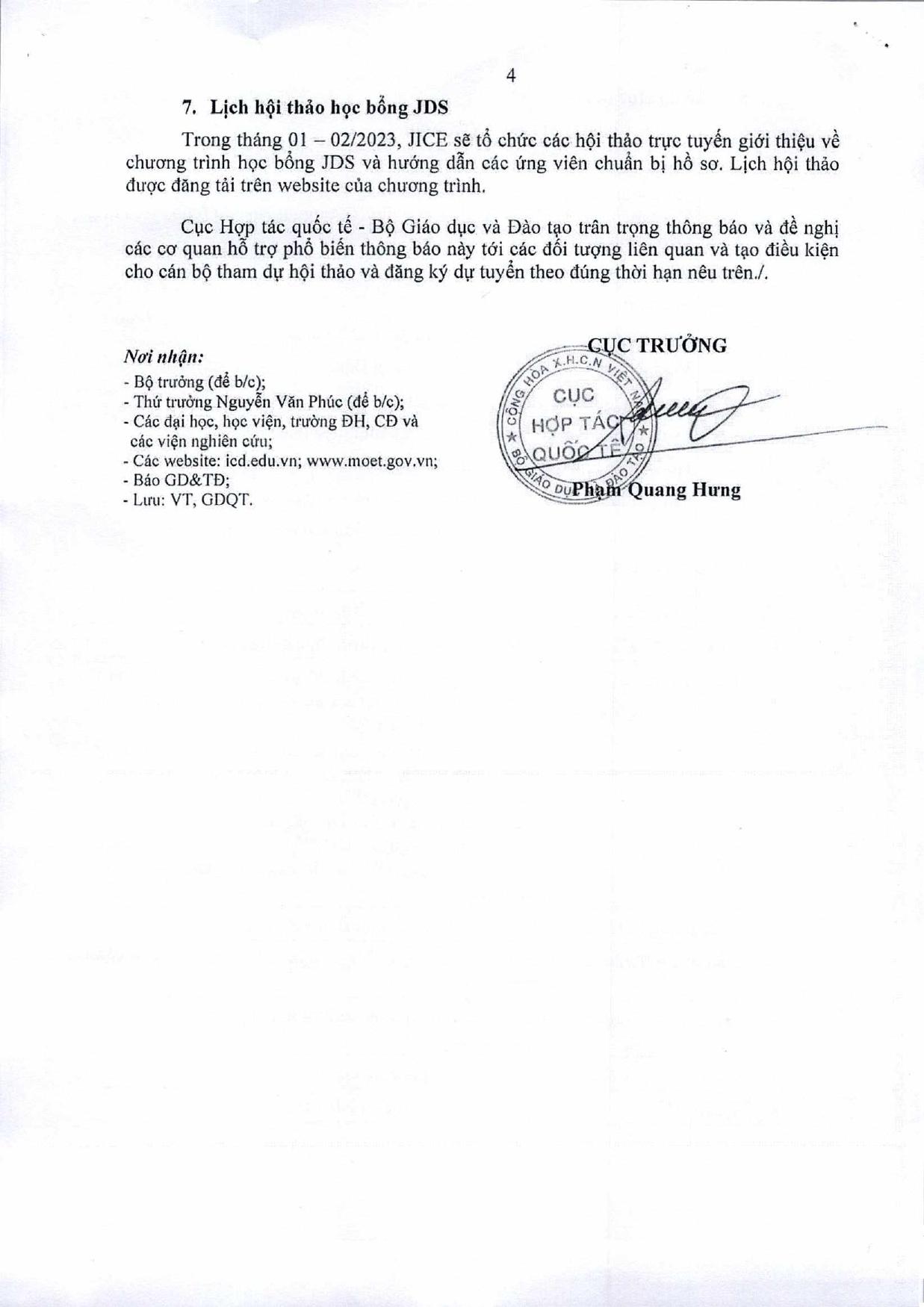Thông báo tuyển sinh đi học thạc sĩ ở Nhật Bản theo chương trình học bổng phát triển nguồn nhân lực cho Việt Nam (JDS) niên khóa 2023 - 2025