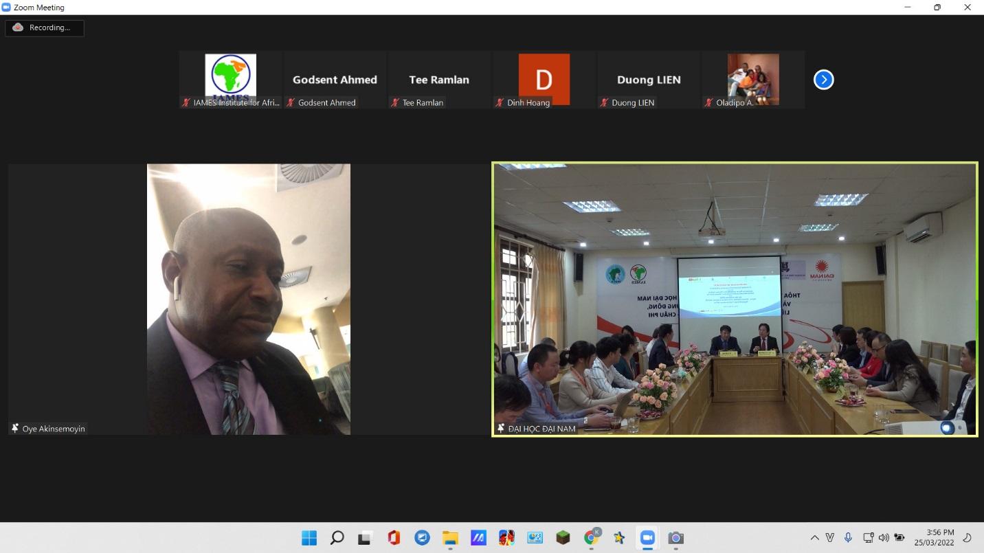 Nhằm góp phần thúc đẩy hợp tác giữa Việt Nam và các nước Châu Phi, IAMES và VAECA phối hợp với DNU ký kết Thỏa thuận hợp tác (MoU) ba bên. Được biết, IAMES là cơ quan nghiên cứu khoa học duy nhất chuyên nghiên cứu về Châu Phi – Trung Đông được thành lập từ năm 2004. VAECA mới thành lập vào năm 2021 với các thành viên sáng lập như: IAMES, Viện Khoa học Nông nghiệp Việt Nam (VAAS), và 06 công ty tư nhân có sứ mệnh kết nối doanh nghiệp Việt Nam với doanh nghiệp châu Phi, xây dựng tiềm lực kinh tế của Việt Nam tại châu Phi vì sự phát triển và thịnh vượng của cả hai bên.